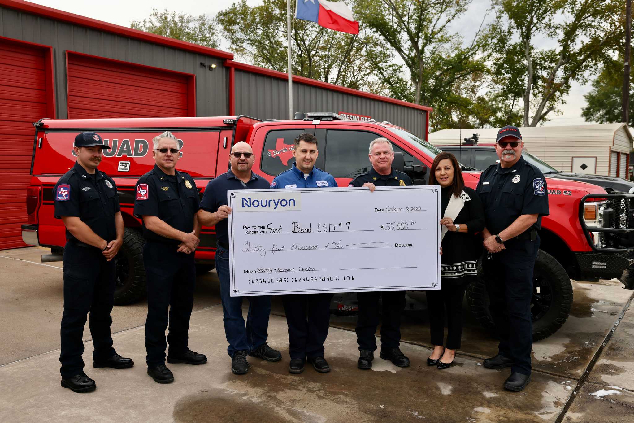 Fresno, TX – During a recent ceremony hosted by the Board of Commissioners for Fort Bend County Emergency Services District (ESD) No. 7, Nouryon a global specialty chemicals leader, donated \$35,000 for rescue training and equipment. The gifted addition allows ESD No. 7 the ability to build a rescue team that is equipped and ready to respond to emergencies in the industrial complexes in the Fresno, Tx community.