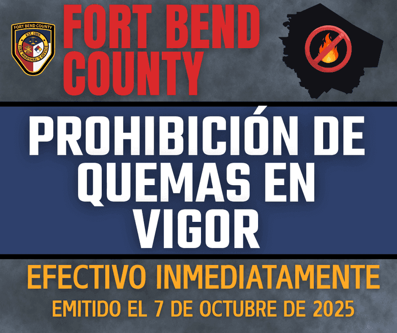 FORT BEND COUNTY, TX – During its regular session on Tuesday, October 7, 2025, the Fort Bend County Commissioners Court approved an outdoor burn ban for all unincorporated areas of the county.